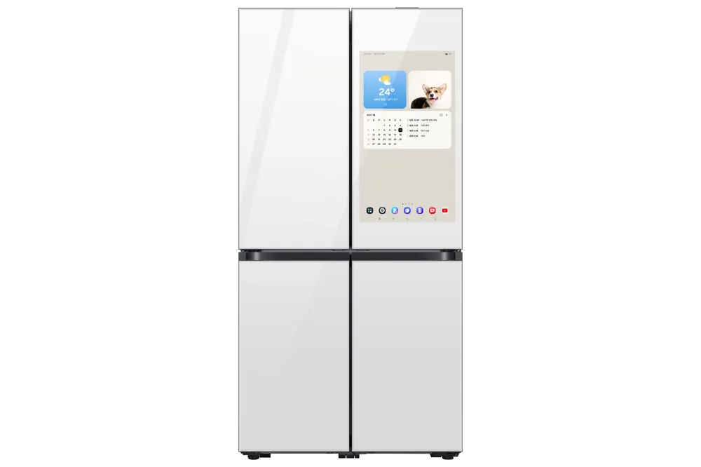 바쁜 가정의 주방 편의를 높이기 위해 AI와 IoT를 접목한 4도어 스마트 냉장고입니다. 문 손잡이를 없애고 자동으로 냉장고 문을 열고 닫아주는 기능과, 내장 대형 디스플레이로 식재료 관리부터 스마트홈 제어까지 수행하는 차세대 패밀리허브 냉장고입니다.
