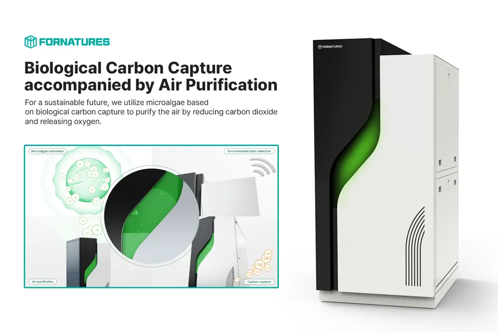 실내 공간의 탄소 저감과 공기 정화를 위해 미세조류를 활용해 이산화탄소를 포집하고 산소를 배출하는 실내 탄소포집 공기정화 장치. (예: 가정, 학교, 사무실 등에서 CO₂ 문제를 해결해 쾌적한 실내 공기를 만드는 솔루션)
