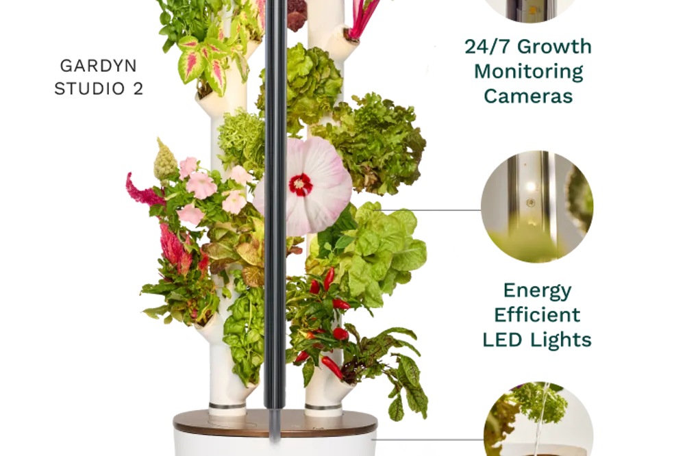 Gardyn Studio 2는 AI 지원 스마트 실내 수경재배 시스템으로, 특허 Hybriponics® 기술과 자동화된 식물 관리로 1.4 평방피트(약 0.13㎡) 좁은 공간에서도 16종 식물을 연중 재배할 수 있는 홈가드닝 솔루션입니다.