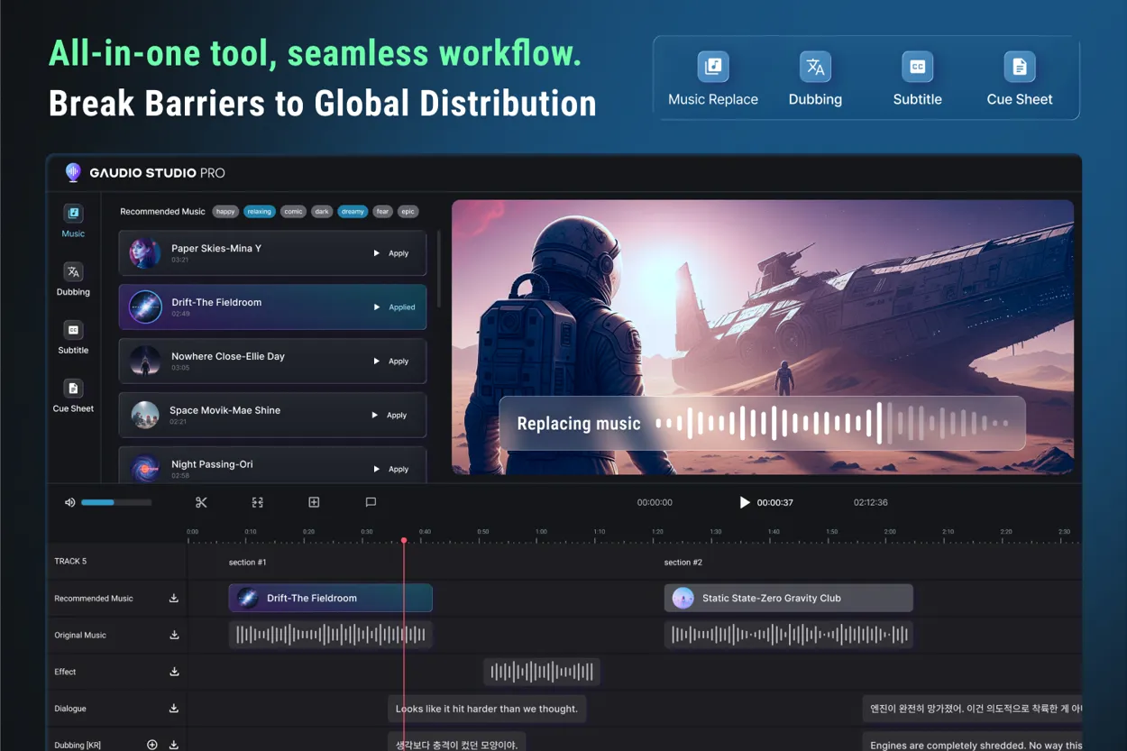 AI 기반 콘텐츠 현지화 플랫폼" – 영화 등의 오디오·자막을 AI로 자동 변환하여 전 세계 배급을 돕는 클라우드 SaaS 솔루션입니다.