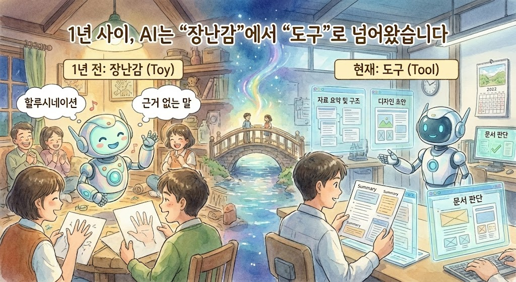 2) 1년 사이, AI는 “장난감”에서 “도구”로 넘어왔습니다