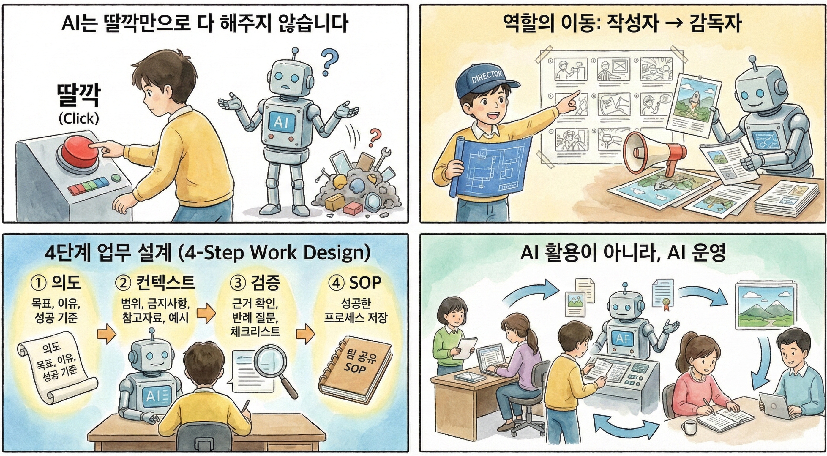 마지막으로, AI를 잘 쓰는 건 개인의 재능이 아니라 SOP(표준 운영)로 굳히는 문제입니다