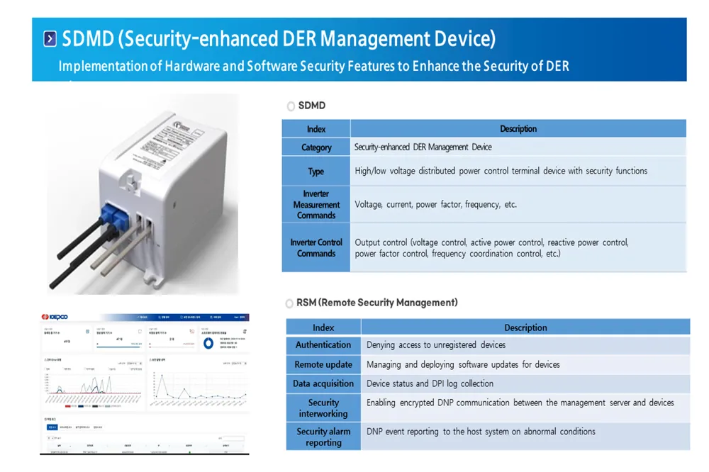 전력망 운영자를 위해, 분산에너지자원(DER)의 데이터를 사이버공격으로부터 보호하고 통합 관리하는 보안 내장형 게이트웨이 장치.