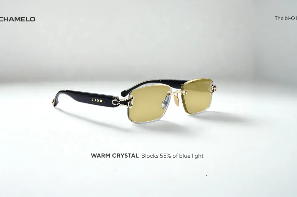바이오해킹 커뮤니티를 겨냥한 적응형 스마트 안경 렌즈로, 액상 프리즘 기술로 렌즈 색상을 자동 변화시켜 아침에는 노란색, 낮에는 주황색, 밤에는 빨간색으로 변환함으로써 서캐디언 리듬(일주기 리듬) 최적화를 지원하는 웨어러블.