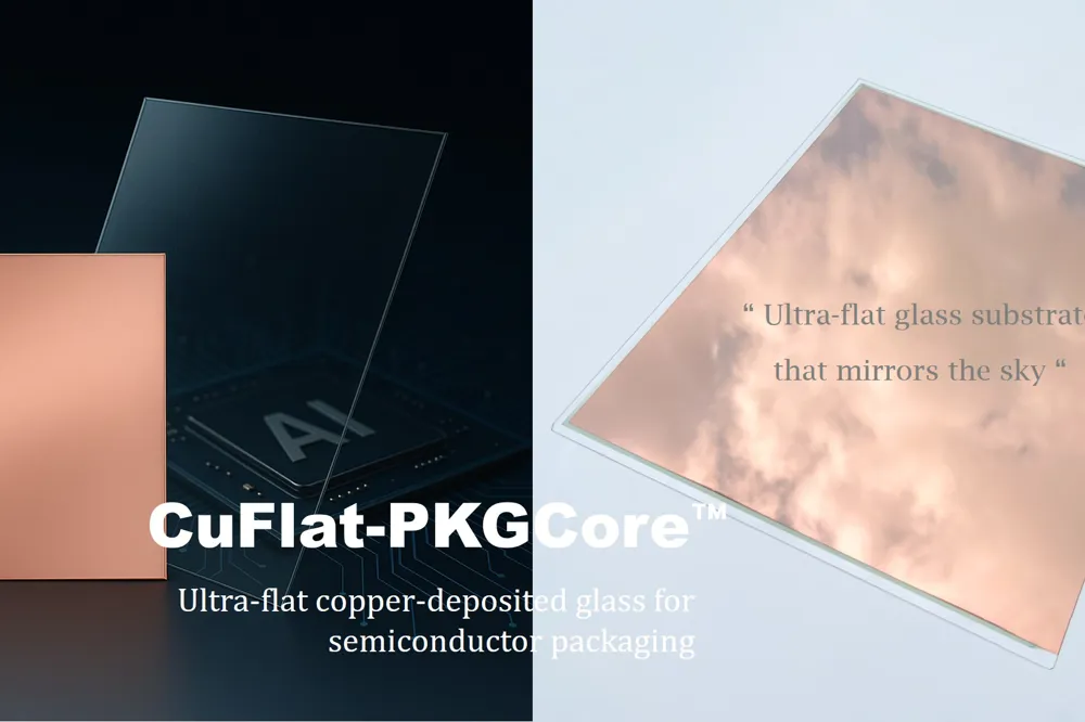 AI 가속기 등 첨단칩을 위한 초평탄 구리-유리 기판 – 반도체 패키지 기판 위에 구리를 원자층 수준으로 평탄 증착하여 고집적∙고속 칩의 신호손실을 줄이고 신뢰성을 극대화한 소재 솔루션입니다.